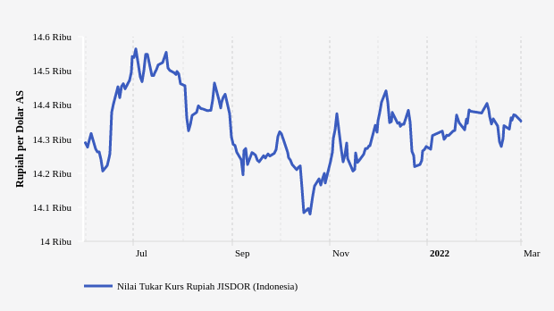 Nilai Tukar Rupiah Melemah ke Level Rp. 14,32 Ribu per Dolar AS (Senin, 14 Maret 2022)