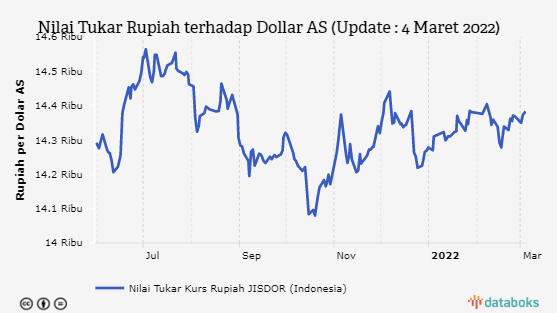 Kurs Rupiah Melemah 0,1% atau 10 Poin terhadap Dolar AS (Jumat, 4 Maret 2022)