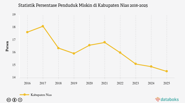 Statistik Persentase Penduduk Miskin di Kabupaten Nias 2016-2025