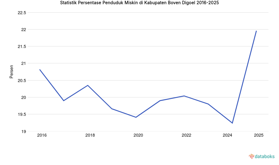 Statistik Persentase Penduduk Miskin di Kabupaten Boven Digoel 2016-2025