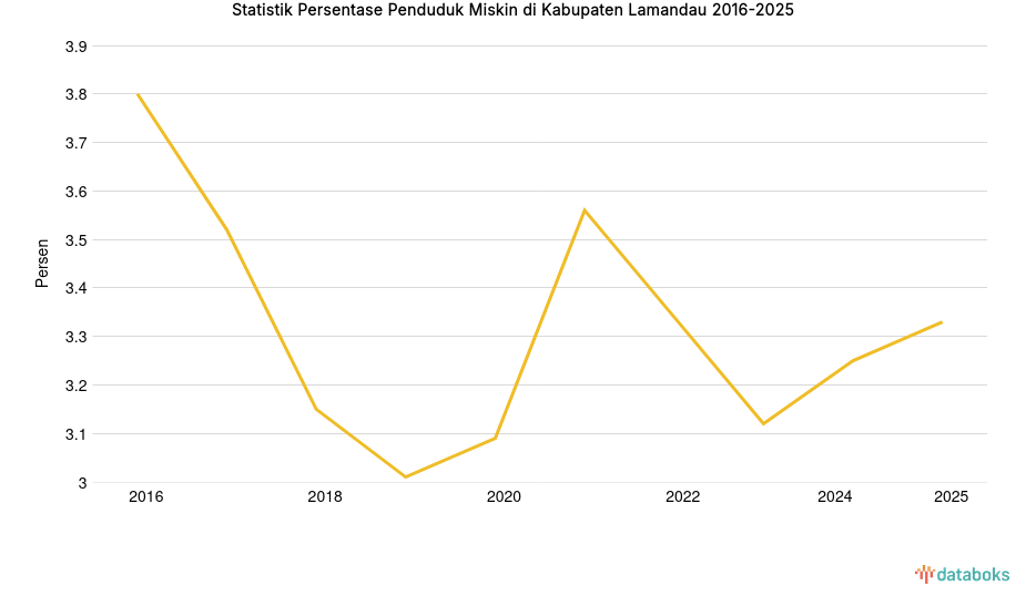 Statistik Persentase Penduduk Miskin di Kabupaten Lamandau 2016-2025