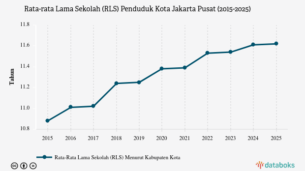 Rata-rata Lama Sekolah Penduduk Kota Jakarta Pusat Sampai Kelas XI pada 2025