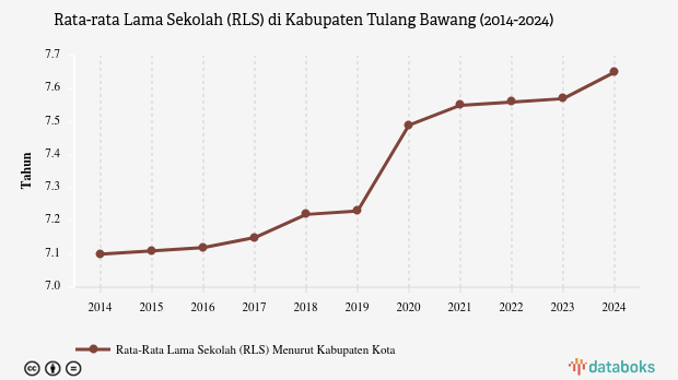 Rata-rata Lama Sekolah Penduduk Tulang Bawang Sampai Kelas 6 SD pada 2024