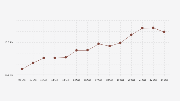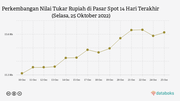 Nilai Tukar Rupiah Melemah ke Level Rp. 15,613 Ribu per Dolar AS (Selasa, 25 Oktober 2022)