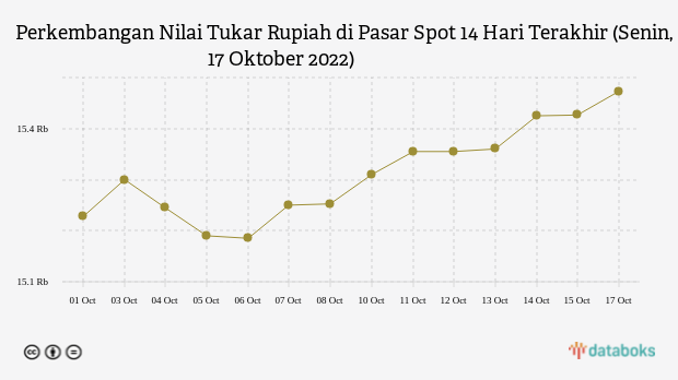 Kurs Rupiah Melemah 0,4% atau 61 Poin terhadap Dolar AS (Senin, 3 Oktober 2022)