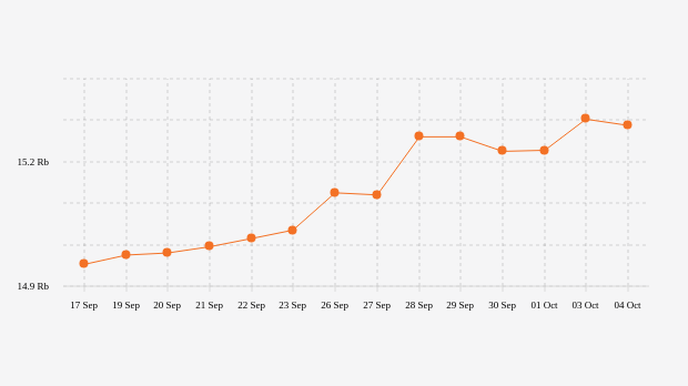 Kurs Rupiah Melemah 0,4% atau 61 Poin terhadap Dolar AS (Senin, 3 Oktober 2022)