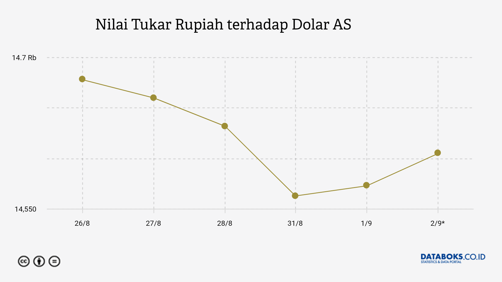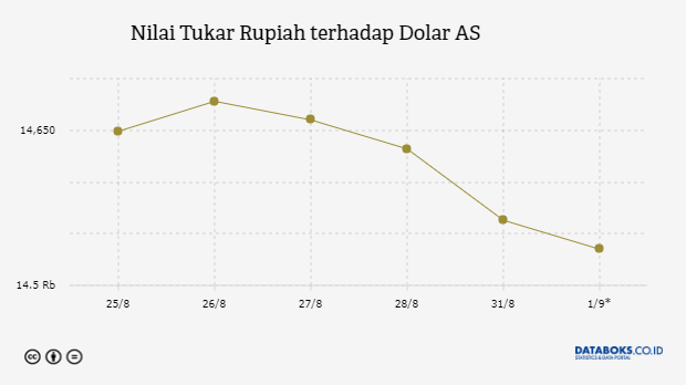 Rupiah Dibuka Melemah ke Level Rp 14.605 per Dolar AS (Rabu, 2/9)