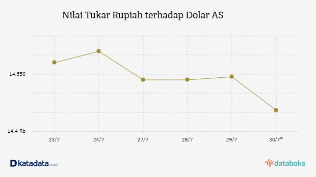 Rupiah Dibuka Menguat ke Level Rp 14.455 per Dolar (Rabu, 29/7)