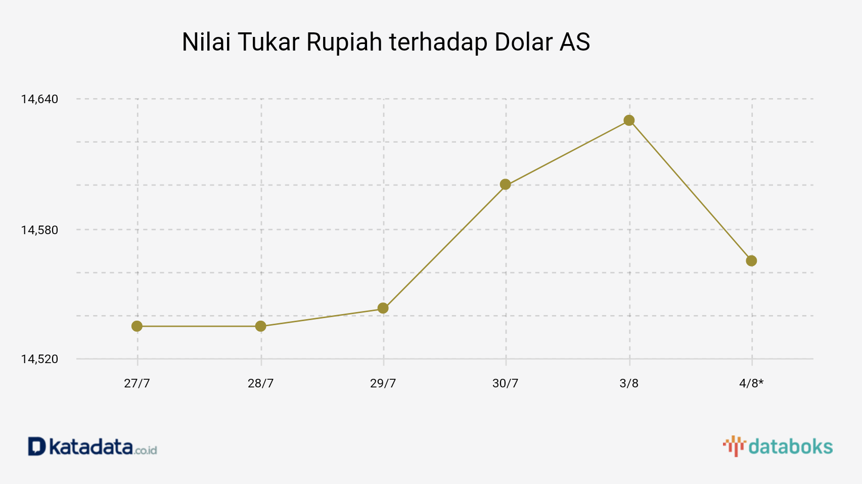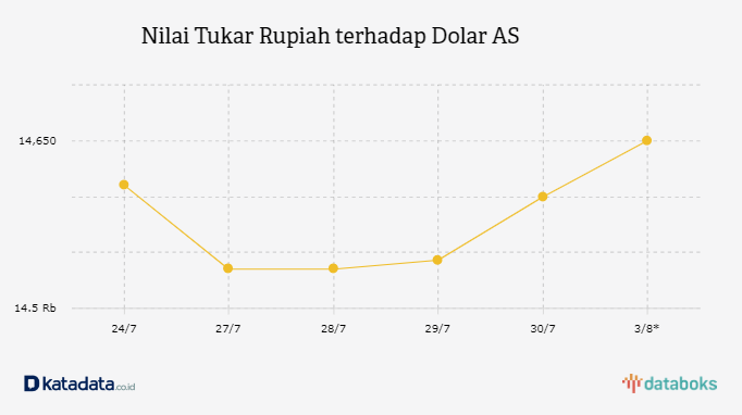 Rupiah Dibuka Melemah ke Level Rp 14.605 per Dolar AS (Senin, 3/8)