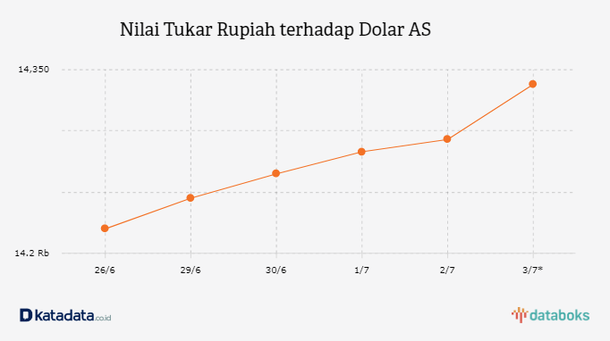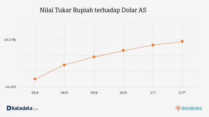 Rupiah Dibuka Melemah ke Level Rp 14.294 per Dolar AS (Kamis, 2/7)