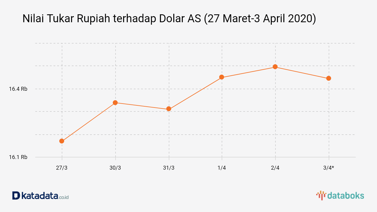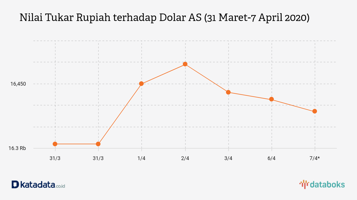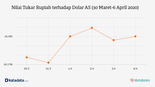 Kurs Rupiah Melemah Menjadi Rp 16.450/US$ (Senin, 6/4)