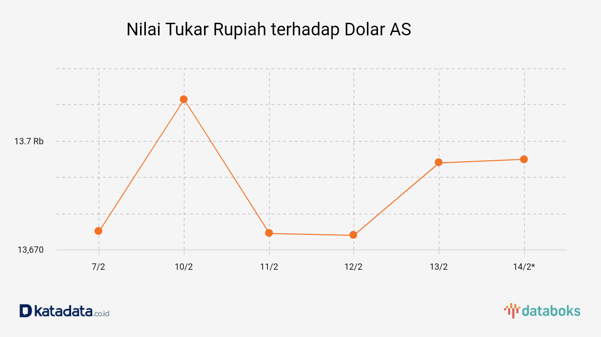 Rupiah Dibuka Melemah Rp 13.695 per Dolar AS, Jumat (14/2)