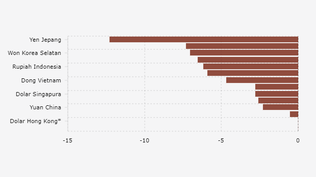 Mata Uang Asia Melemah Sejak Awal 2024, Yen Jepang Jatuh Terdalam