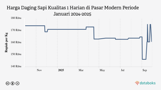 Harga Daging Sapi Kualitas 1 di Pasar Modern Periode September 2024-2025