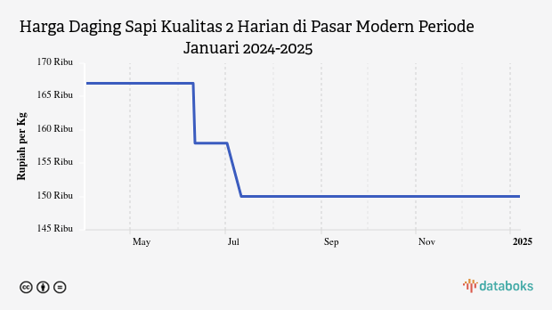Harga Daging Sapi Kualitas 2 Harian di Pasar Modern Provinsi Kalimantan Selatan Sebulan Terakhir Masih di Harga Rp150 Ribu per Kg
