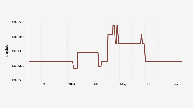 Harga Daging Sapi Kualitas 1 Harian di Pasar Tradisional Provinsi Gorontalo Sebulan Terakhir Masih di Harga Rp132,5 Ribu