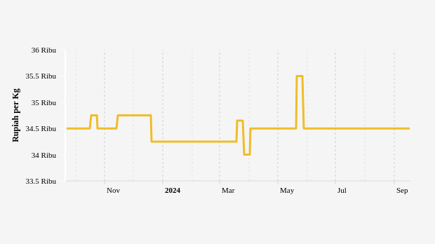 Harga Telur Ayam Harian di Pasar Modern Provinsi Papua Sebulan Terakhir Masih di Harga Rp34,5 Ribu per Kg