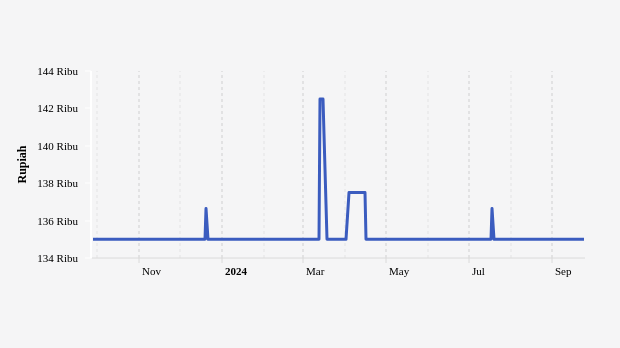 Harga Daging Sapi Kualitas 1 Harian di Pasar Tradisional Provinsi Aceh Sebulan Terakhir Masih di Harga Rp153,35 Ribu