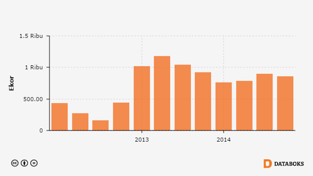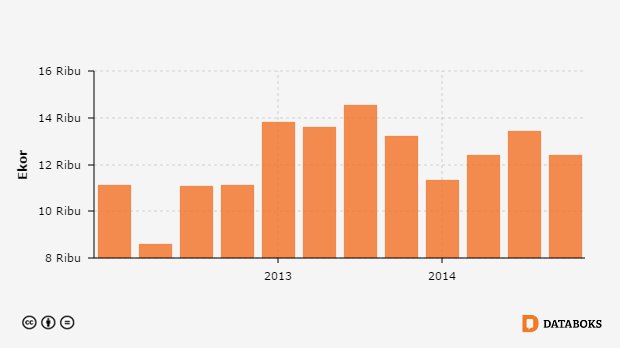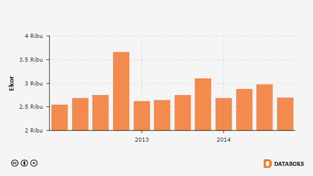 Data Triwulanan Pemotongan Sapi, Sapi di Gorontalo 2009 - 2014