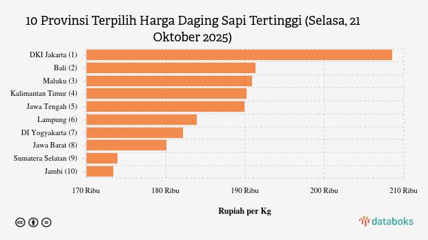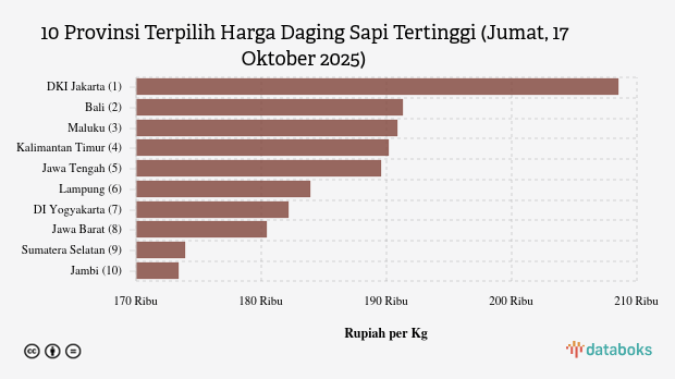 10 Provinsi dengan Harga Daging Sapi Paling Mahal (Jumat, 17 Oktober 2025)