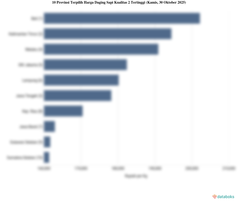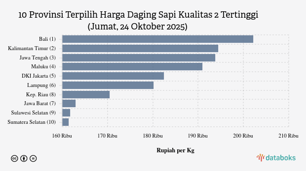 10 Provinsi dengan Harga Daging Sapi Kualitas 2 Paling Mahal (Jumat, 24 Oktober 2025)