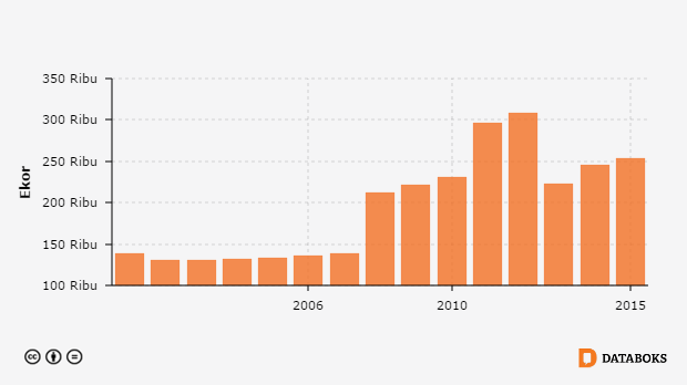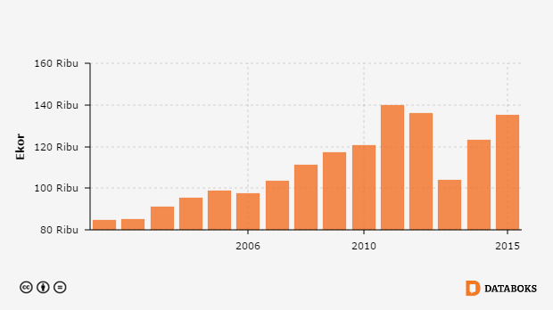 Data Triwulanan Pemotongan Sapi, Sapi di Jawa Tengah 2000 - 2015
