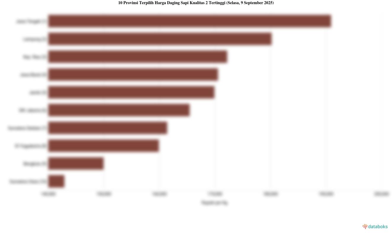 10 Provinsi dengan Harga Daging Sapi Kualitas 2 Paling Mahal (Selasa, 9 September 2025)