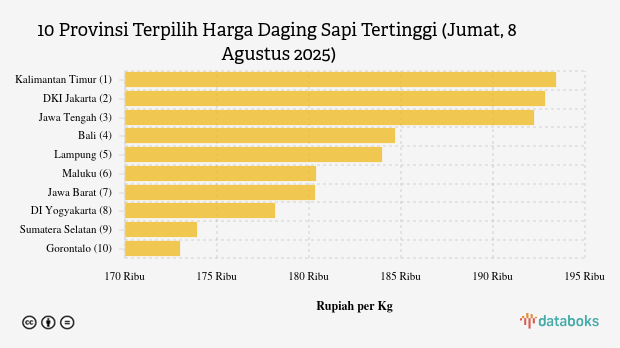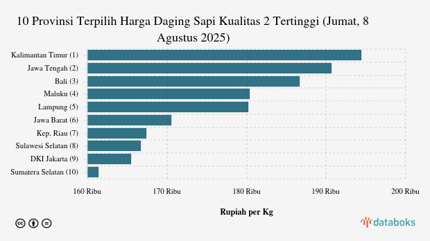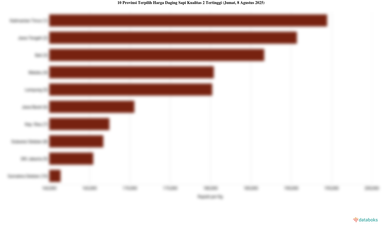10 Provinsi dengan Harga Daging Sapi Kualitas 2 Paling Mahal (Jumat, 8 Agustus 2025)