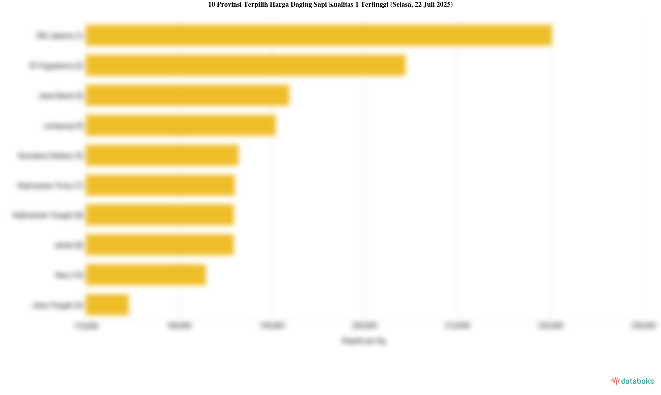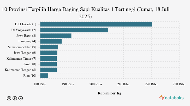 10 Provinsi dengan Harga Daging Sapi Kualitas 1 Paling Mahal (Jumat, 18 Juli 2025)