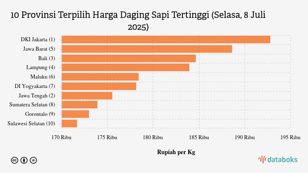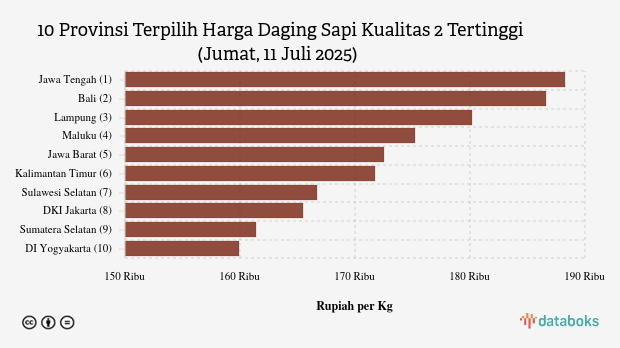 Harga Daging Sapi Kualitas 2 di 10 Provinsi Ini Paling Mahal (Jumat, 11 Juli 2025)