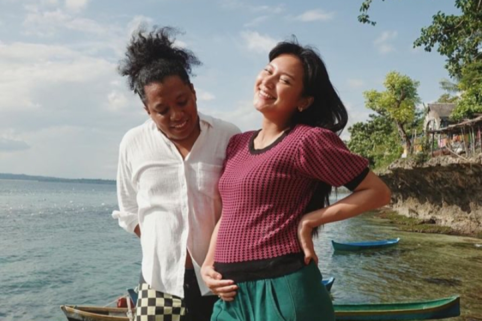 Keduanya terlihat mengenakan pakaian adat Buton berwarna merah dan berjalan menuju ke lokasi acara. Di sisi lain, keduanya juga terlihat berpose sedang berdiri di seberang bibir pantai.