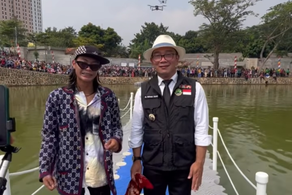 Dalam video yang dibagikan oleh akun Instagram @depok24jam, Bonge terlihat salam pada Ridwan Kamil yang baru datang ke jembatan di atas danau. Setelah itu, Bonge dan suami Atalia Praratya tersebut langsung berjalan menelusuri jembatan sembari melambaikan tangan kepada masyarakat.