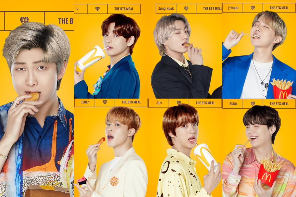 Setelah sukses mengguncang dunia dengan karya-karyanya, BTS berkolaborasi dengan perusahaan makanan McDonalds. Grup beranggotakan RM, Jin, Suga, J-Hope, Jimin, V dan Jungkook tersebut menghadirkan menu baru bernama BTS Meal, yang bisa dinikmati ARMY di berbagai negara.