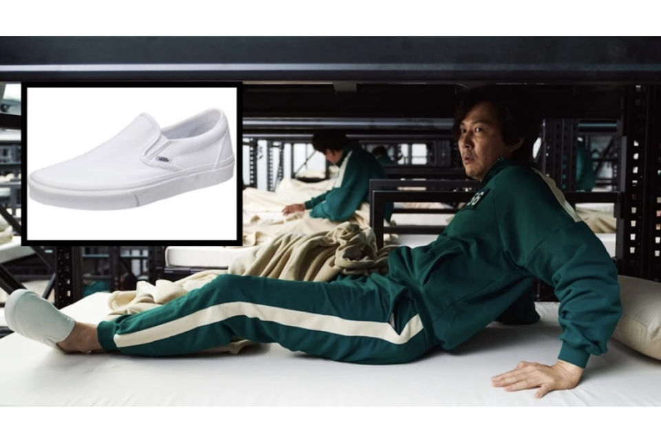 Selain baju olahraga tersebut, dilaporkan juga sepatu putih sejenis Vans slip-on mengalami peningkatan penjualan. Menurut data, penjualan sepatu tersebut melonjak hingga 7800% sejak pemutaran Squid Game di Netflix pada 17 September 2021. Menurut data Lyst, pencarian slip-on putih di internet juga meningkat hingga 97%.