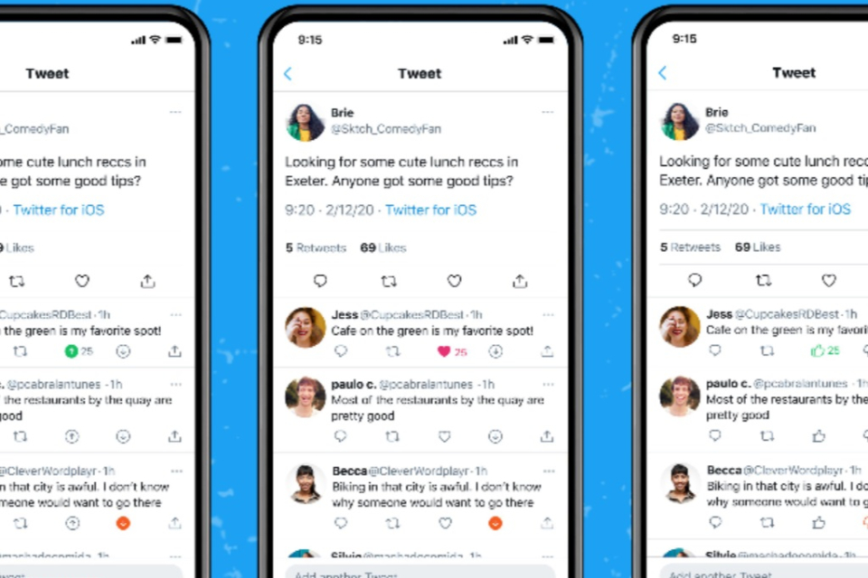 Menurut Twitter, uji coba ini akan menghadirkan tiga bentuk tombol yang berbeda dari ikon upvote dan downvote. Tiga bentuk tersebut antara lain ikon panah atas dan bawah, ikon hati dan panah bawah, serta ikon jempol ke atas dan jempol ke bawah.