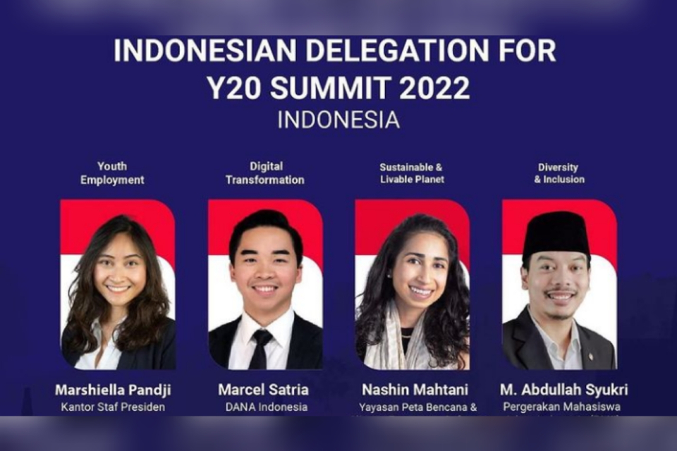 ZIGI – Empat delegasi Indonesia di Youth 20 2022 sudah diumumkan pada 22 Februari 2022. Marshiella Pandji, Marcel Satria, Nashin Mahtani, dan M. Abdullah Syukri masing-masing akan terlibat dalam diskusi 4 tema utama Youth 20 Indonesia.