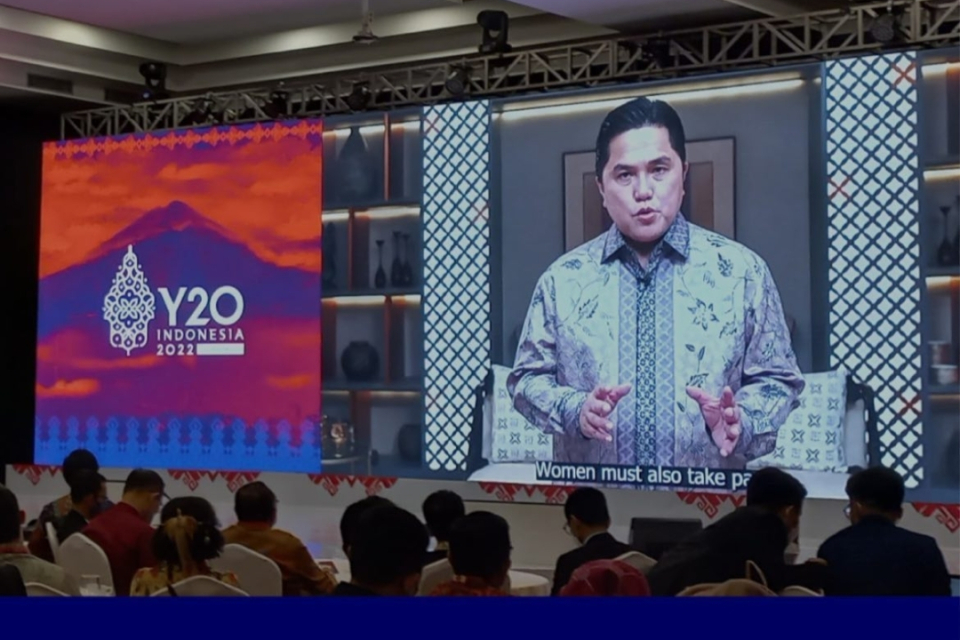 “Partisipasi pemuda dalam pembangunan bangsa sangatlah penting. Maka dari itu saya sangat mengapresiasi forum Y20 ini untuk merumuskan ide terbaik bagi pembangunan Indonesia dan dunia, khususnya di empat topik yaitu ketenagakerjaan pemuda, transformasi digital, planet yang berkelanjutan dan layak huni, serta keberagaman dan inklusi,” tutur Erick Thohir.